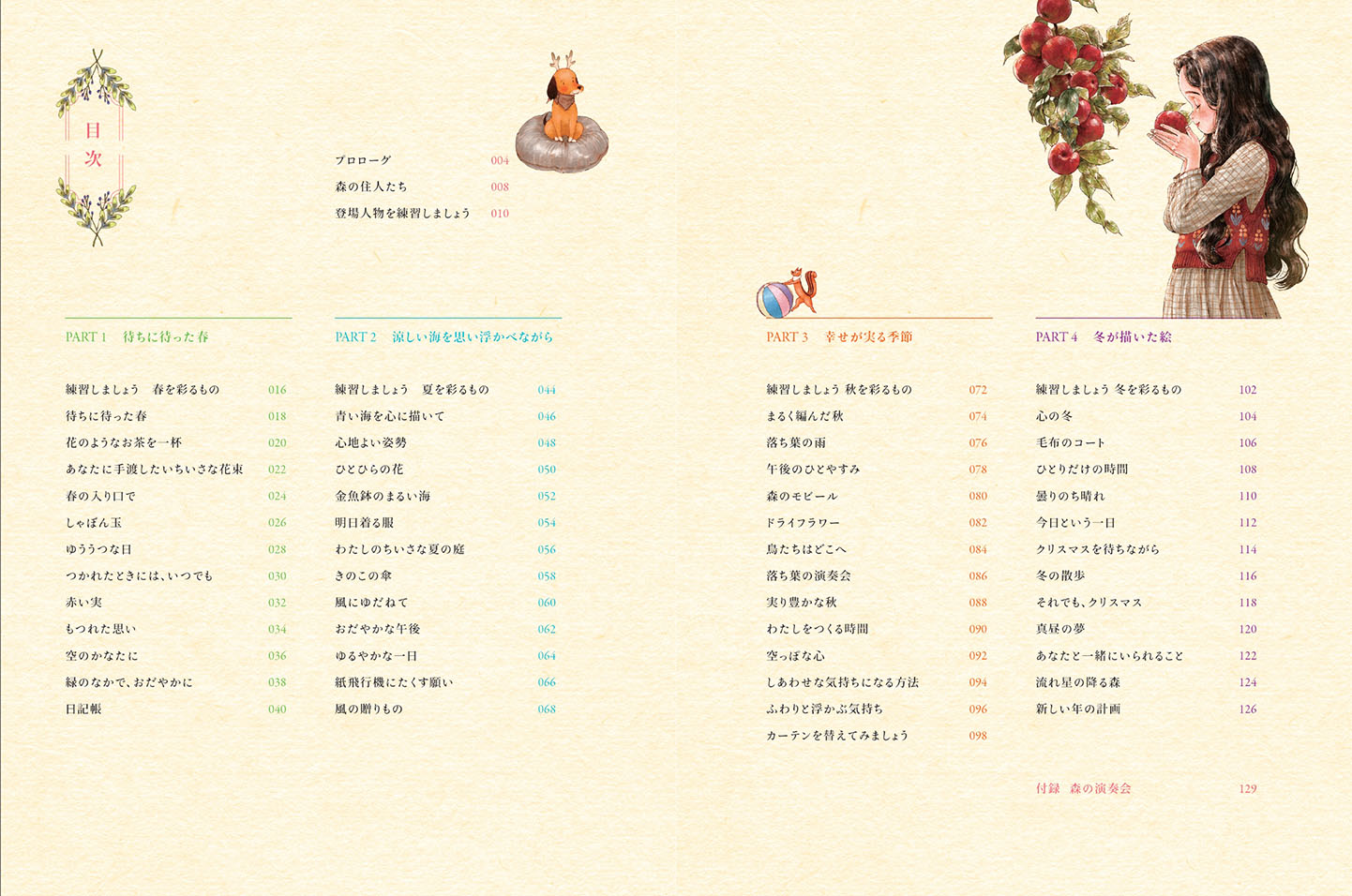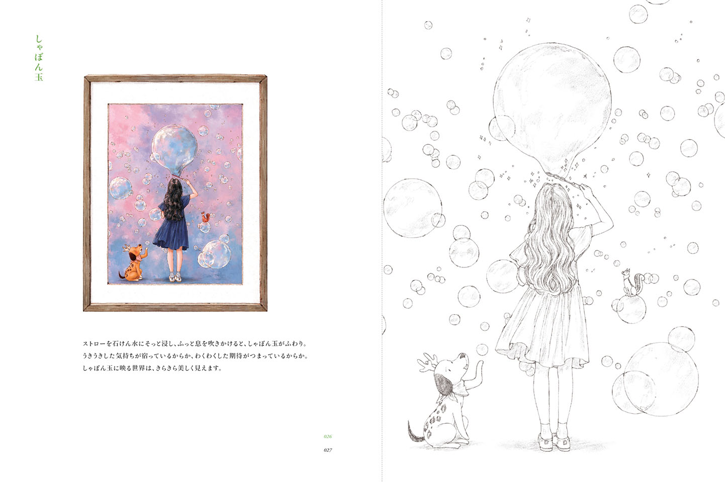 韓国の人気イラストレーター エポルによる新作塗り絵シリーズの第4弾。4年ぶりとなる待望の新作では、主人公のエポルがすこし成長し、大人らしい印象へと雰囲気を変えました。より多彩で幻想的な世界観の強まった本作では、四季の風物詩をテーマとしながらも、今まで通り内省的で味わい深い文章と共に新作イラストを54点以上掲載。同ページに掲載されている見本を見ながらでも、自分の思うがままにも、塗って楽んでいただける仕様になっています。