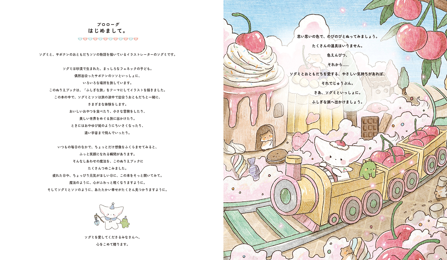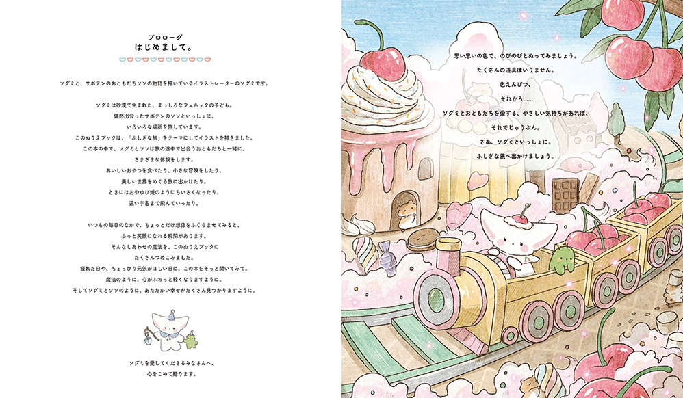 韓国の人気イラストレーターが描く、フェネックのソグミとサボテンのソソによる幻想的な旅のぬり絵ブック。ゆるゆる、ふわふわ。この不思議なまほうの冒険を塗っていると、なんだか心がほどけてくる…。忙しない毎日を送る、大人のためのぬり絵ブックです。