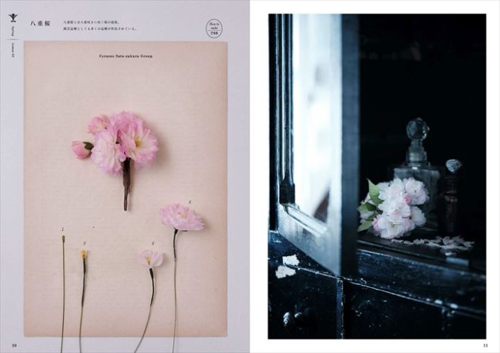 utopianoさんならではの作りたい植物から実際に型紙をおこす方法や色の作り方などをさらに詳しく解説しています。ただ植物をまねて布花を作るだけではない、布花標本をいちから自分で作れるようになる工程とヒントを掲載。美しい写真で16種類の植物を紹介します。