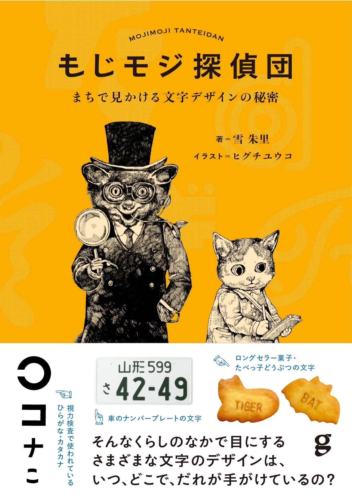 「視力検査で使われているひらがな・カタカナ」「車のナンバープレートの文字デザイン」「ロングセラー菓子・たべっ子どうぶつの文字」そんなくらしのなかで目にするさまざまな文字のデザインは、いつ、どこで、だれが手がけているの? を、アイアイ探偵と助手のねこくんが徹底調査し謎を解き明かす。