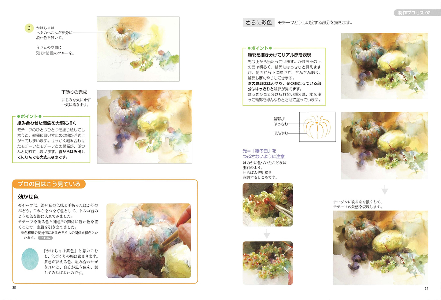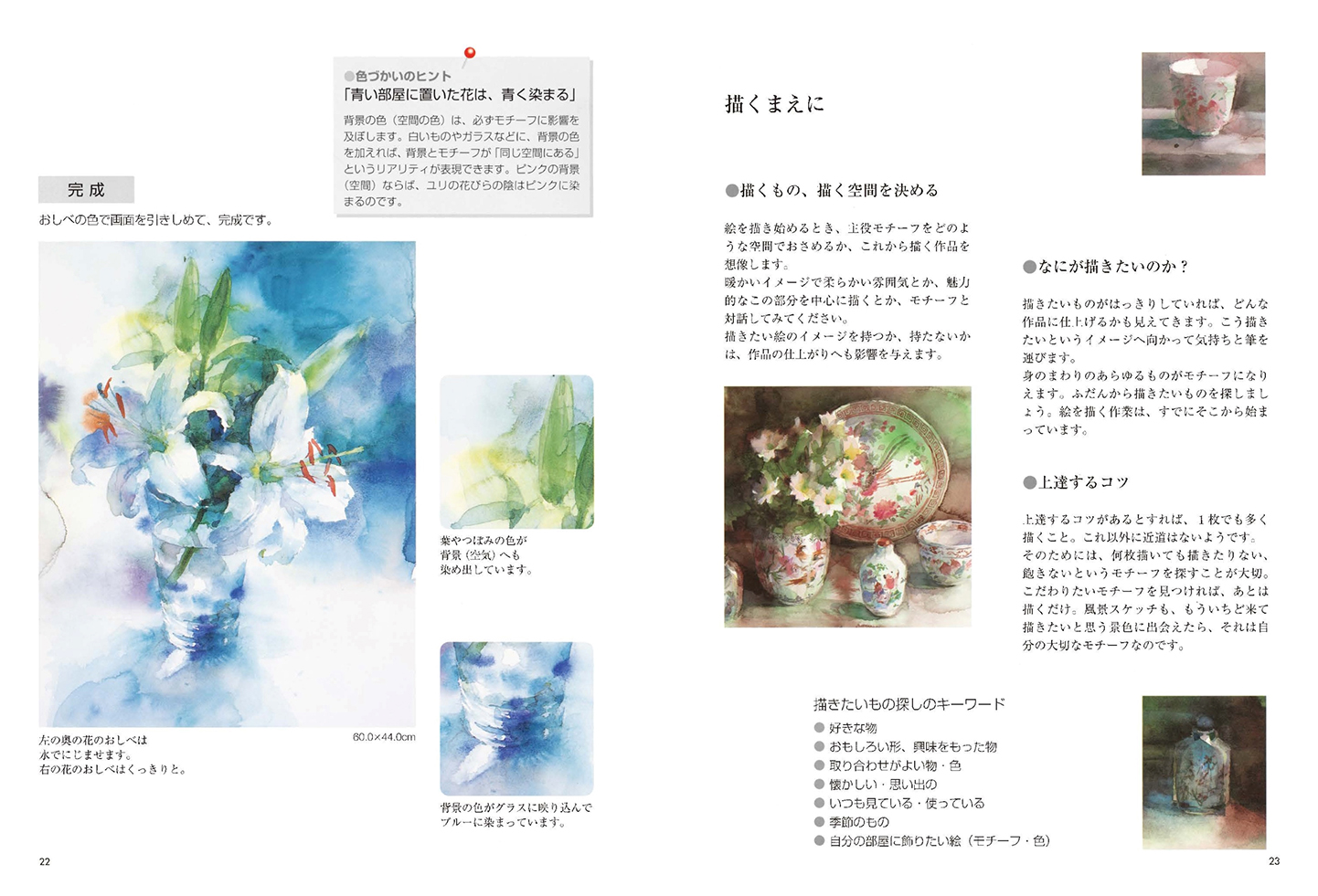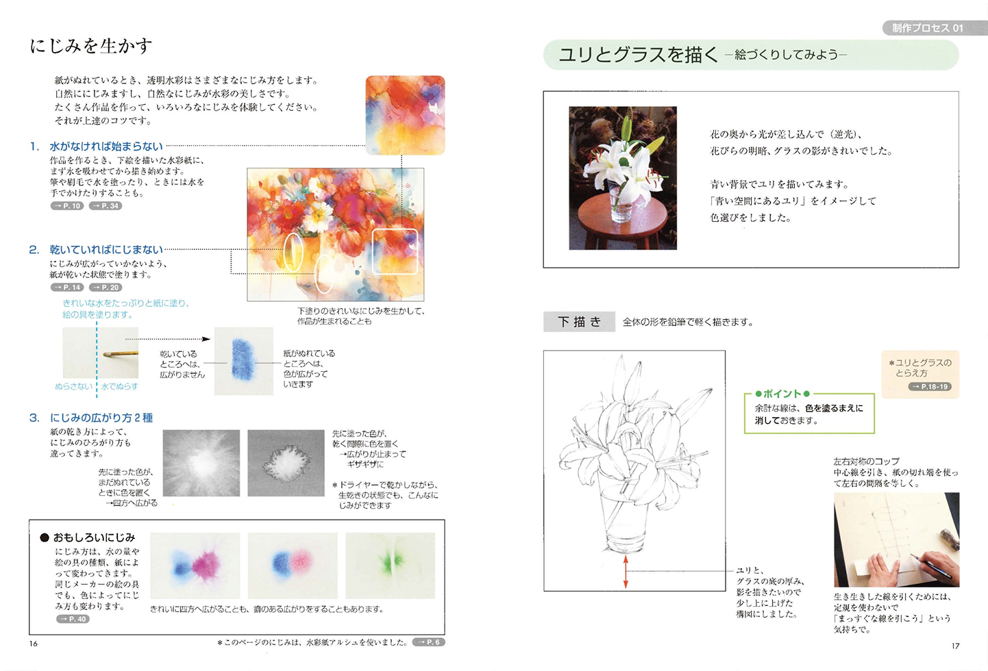右近としこ 技法解説/水彩技法研究会 作品解説
