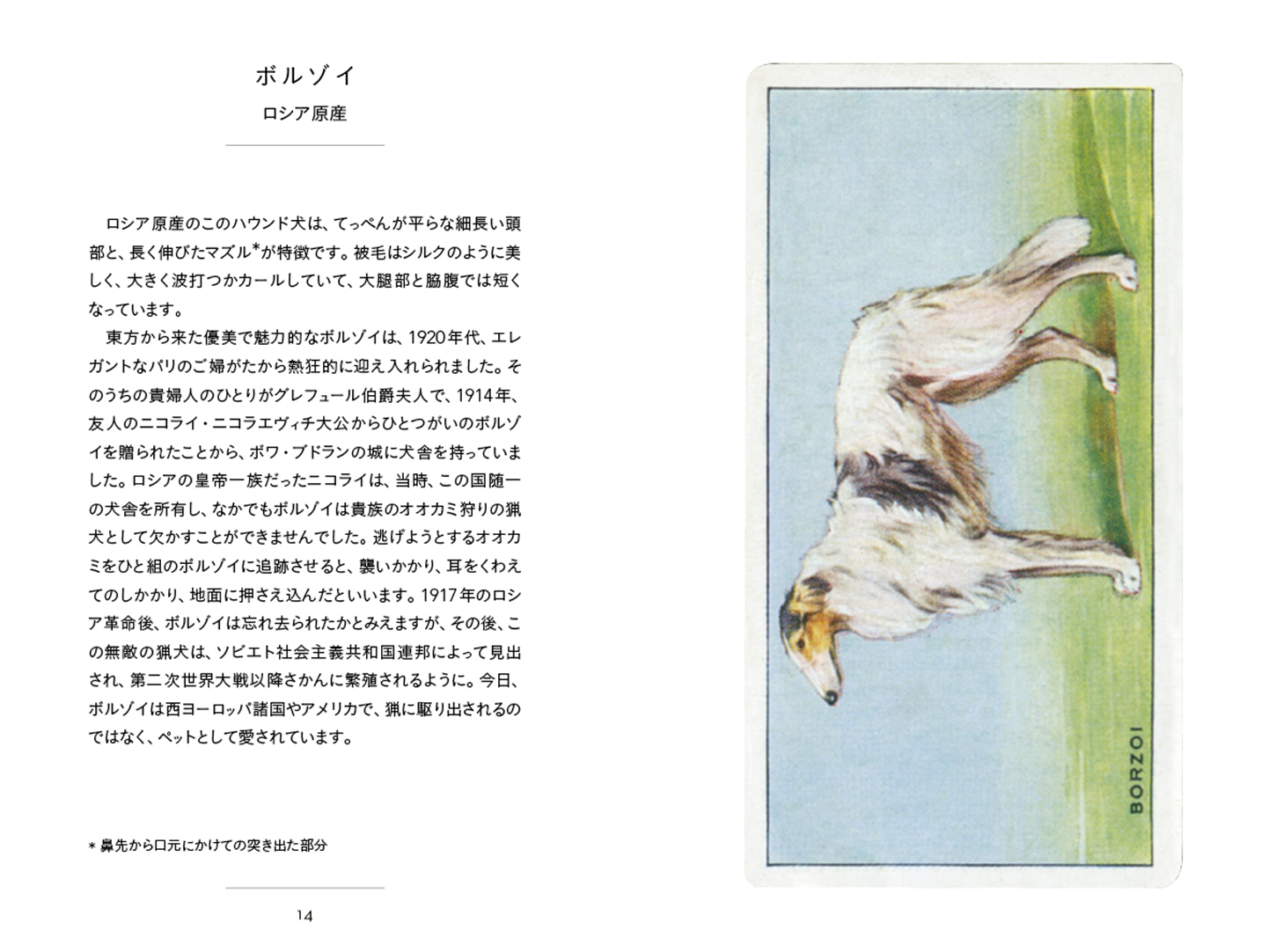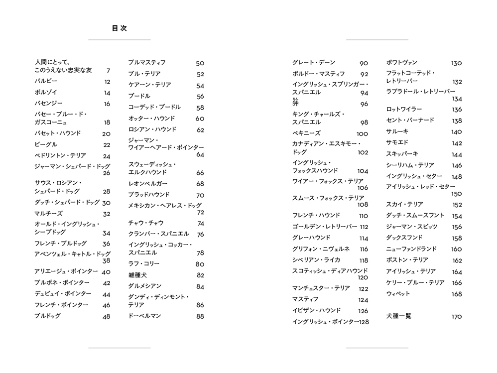宮廷で愛された犬、狩猟の名手、牧羊のパートナーなど、79種類の犬が人とともに歩んできた歴史を、レトロで可愛らしい図版とともに紹介します。