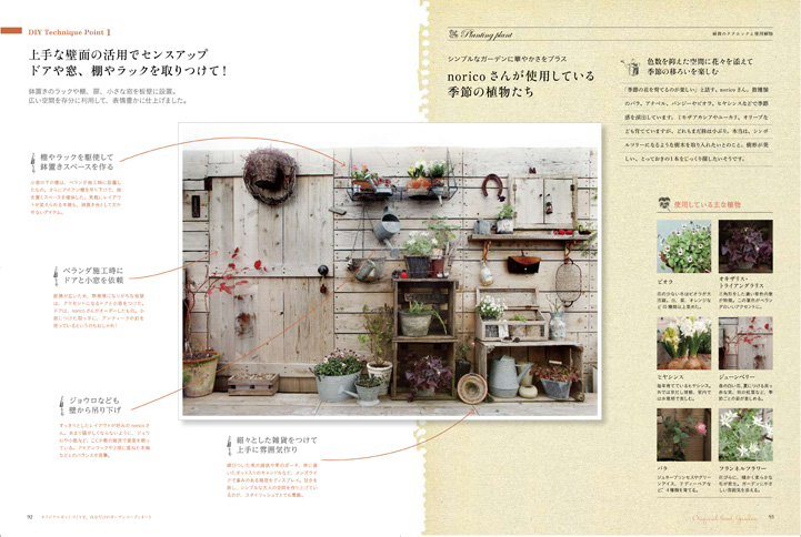 誰でも簡単にできるアイテムの作り方を紹介し、コーディネイト方法をはじめ、さまざまなDIY術とアイデアや植栽などを解説していきます。どんな手作りアイテムが取り入れやすいか、豊富な実例が参考になります。