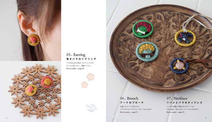Theme02 小さなリングで巻きバラのイヤリング、ブーケのブローチ、椿の帯留め など