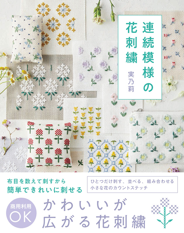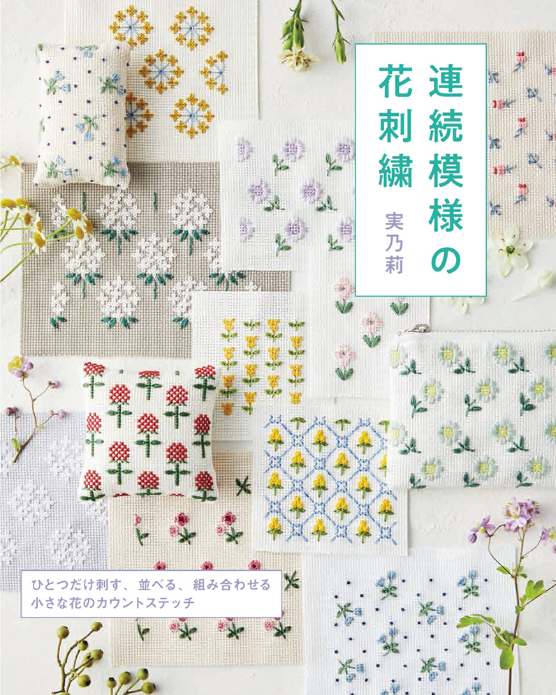 小さくてかわいい花ばかり、55種類の図案を掲載。フランス刺繍の数種類の基本ステッチを、布目を数えて刺すので初心者から楽しめます。お花をひとつだけ刺しても、連続して広がるように刺してもどちらもかわいい、応用のきく刺繍です。